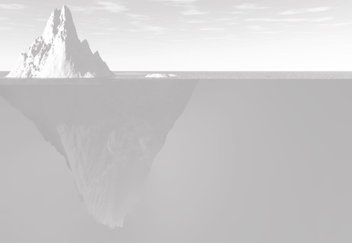 In this respect, the iceberg represents the head/body split where the ‘heads’ of the organisation are visible above the horizon line, and their thinking (or at least the homogenised corporate version of it) is visible and audible. The visible part often includes the espoused values of the organisation, the posters about commitments to customers or service users, and the published policies and strategies. The audible part often comes from that parental communication place: ‘it’s not up for conversation, this has been decided above my level, it’s a financial decision and the one that crops up a lot in public sector organisations, it’s a political mandate.’